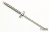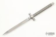 This Spanish Dagger from Pat Crawford is an all steel 440C sleeve knife. It is designed and refined after seeing the OSS sleeve dagger from World War II. The blade is triangle shaped for strength and easy penetration. The handle is knurled for a sure grip and has posts for a guard. Excellent condition.