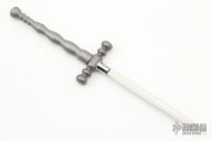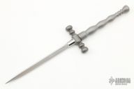 This Spanish Dagger from Pat Crawford is an all steel 440C sleeve knife. It is designed and refined after seeing the OSS sleeve dagger from World War II. The blade is triangle shaped for strength and easy penetration. The handle is bead blasted. Has a couple of light scuffs, otherwise excellent condition.