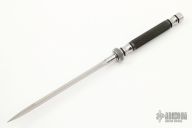 The Triangle Dagger from Pat Crawford is an all steel 440C sleeve knife. It is designed and refined after seeing the OSS sleeve dagger from World War II. The blade is triangle shaped for strength and easy penetration and mirror polished, .298" thick. The handle is knurled for a sure grip. Each dart is individually hand ground for the highest quality. Excellent condition.