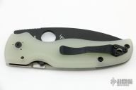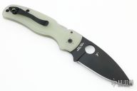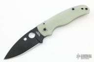 This Shaman Pin by Spyderco features a black spear point blade with notched thumb and finger rests, thumbhole. The handle has jade G-10 scales, inlaid stainless steel liners and a satin finished stainless steel backspacer, 4-way reversible stainless steel clip, lanyard hole at the butt. Comes with original box and papers. Excellent condition.