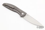 This Neon Zero by Shirogorov Knives features a stonewashed blade, mirror polish flats, with notched thumbrest and flipper. The handle has a stonewashed titanium frame with matching tip up clip. Nice detent, lockup and blade seating. Has MRBS. Comes with original box and papers. Excellent condition.