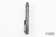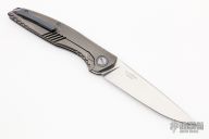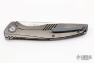 This 110 Lee Williams Kickstop by Shirogorov Knives features a two-tone blade with notched thumbrest and Kickstop flipper. The handle has a milled and blasted titanium frame with anodized titanium pivot collars, backspacer, hardware and tip up clip with hidden screws. Rides on RBS, nice detent, lockup and blade seating. Comes with original box and papers. #221 of 300. Excellent condition.