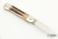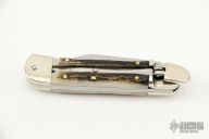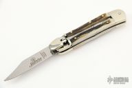 This leverlock auto by Hubertus features a mirror polished clip point blade, nickel silver double bolsters, stag scales, and brass liners and pins. Opens with a nice snap. Very fast opening. Comes with original box. New condition.