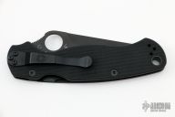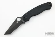 This G81GM4BKP2 Paramilitary 2 by Spyderco features a black tanto blade with thumb hole, notched thumb ramp and choil. The handle is comprised of textured black G10 scales over a stainless steel subframe and lockbar. 4 way adjustable pocket clip and lanyard tube in pommel. Includes original box and paperwork. Excellent condition.