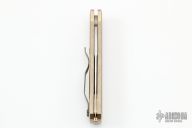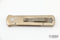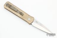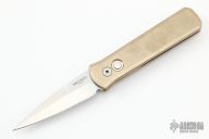 This 7110 Godson from Pro-Tech Knives features a satin finished blade with swedge. The handle has a stonewashed bronze frame with matching tip up pocket clip and a mother-of-pearl butto.  New From Maker at the 2022 USN Gathering. Comes with original box and papers.