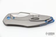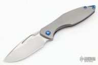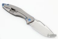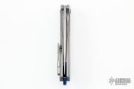 This Arius Non-Flipper by Koenig knives features a burnished with PF blade with thumbhole. The handle has a bead blasted and pattern milled titanium frame anodized titanium backspacer and a bead blasted tip up clip with hidden screws. Has ceramic bearings and a ceramic detent ball. Nice detent, lockup and blade seating. Comes with original box and COA dated July 29, 2022. New from maker.