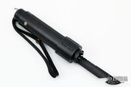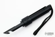 Unique design with flashlight and knife in one package. Knife blade is curved to the contour of the light body. Twist to push open and twist to lock. Blade has gut hook and serrations.  Comes with charging cord with American and European Adapters. Comes with original box, sheath and papers. New From Maker.