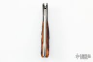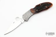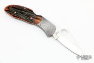 This Delica Lockback Folder has a mirror polished blade with thumbhole. The handle has Mosaic Damascus bolsters, stag jigged bone scales, stainless steel liners and backspacer. Has a few light scratches, otherwise excellent condition. Comes with Spyderco wooden box. #408