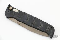 This Militia Auto by Rob Dalton features a bronzed and bead blast finished blade and a black anodized aluminum frame with safety. Titanium clip, tip up carry. Powerful coil spring action. Has scuffs, otherwise excellent condition. #20173