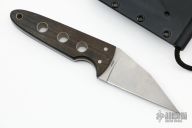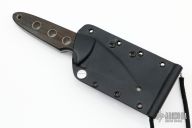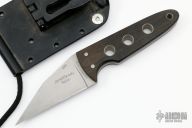This FB09 Ronin is a Michael Janich/Mike Snody design executed by Spyderco. It features a matte finished wharncliffe style blade with notched thumbrest. The handle is comprised of black linen micarta with hollow pins and lanyard tube over full tang construction. Includes kydex sheath. Has a couple light scuffs, otherwise excellent condition. #171