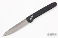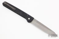 This Battle Dragon automatic by Rob Dalton has a bead blast blade and a black aluminum frame. Bead blast titanium clip. Has some scuffs and scratches, otherwise good condition. #032 on frame near clip.