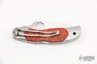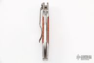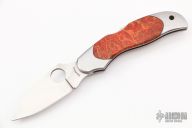 This Kopa by Spyderco features a satin finish VG10 blade, and stainless steel double bolsters. This one has red coral inlays. Stainless steel clip, tip down carry. Has some light scratches and patina, otherwise excellent condition. Rare and Discontinued.