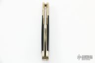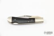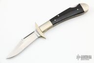 This swing guard lockback by AG Russell features a satin finished clip point blade with a nail nick.  The handle features nickel silver bolsters, black linen micarta covers, nickel silver liners.  Has soem light scratches, otherwise excellent condition.