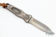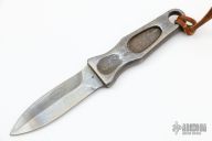 This Sting dagger features an integral Damascus double-edged blade and handle. .121" blade stock and .871" blade depth with full integral construction. Scuffs, scratches and oxidation are visible otherwise the knife is in good condition.