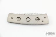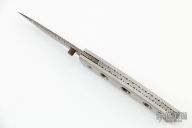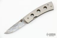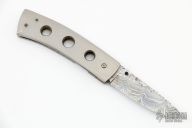 This Model 162 Linerlock from Phillip Doc Hagen features a drop point Damascus blade with fileworked spine and single thumbstud. The handle has titanium scales and liner over a fileworked Damascus backspacer. Great blade seating, detent and lock up. Has some scratches and oxidation, has been used and carried, user condition.