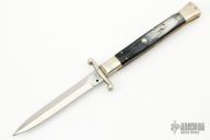 Angelo Campolin Sr. was born in 1923 in Maniago, Italy. He worked on perfecting his knife making skills before WWII and at this time made his first switchblades. After the war, in 1947 he started his company and made 30 stilettos with the marking “Angelo Campolin”. In the 1970’s Angelo’s son Gianni started to work in the company and they were specializing in folding hunting knives and also manual folding stilettos for the Robert Klaas company in Solingen Germany with their Kissing Cranes mark. In 2002 American switchblade collectors Dan Fuller, Brad West, and Tim Zinser were visiting Maniago and enjoying a few glasses of wine in a bar with Angelo Jr. and Gianni. The discussion was about a new name for some knife projects they wanted to pursue. It was Brad West that suggested the tang stamp should be AGA, for Angelo, Gianni, Angelo, thus representing three generations in the knife making business. The Campolins liked it and it stuck. In the beginning it was just a few items, but grew to the point where now there are 12 models and different scale options. The goal has been to offer quality switchblades using the old methods and traditions. Being a collector himself, Angelo Jr. knows what others like. The company headquarters has moved to Austria with production still in the original Maniago shop, as well as the others in Maniago that produce the knives for A.G.A. Campolin.