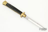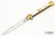 Angelo Campolin Sr. was born in 1923 in Maniago, Italy. He worked on perfecting his knife making skills before WWII and at this time made his first switchblades. After the war, in 1947 he started his company and made 30 stilettos with the marking “Angelo Campolin”. In the 1970’s Angelo’s son Gianni started to work in the company and they were specializing in folding hunting knives and also manual folding stilettos for the Robert Klaas company in Solingen Germany with their Kissing Cranes mark. In 2002 American switchblade collectors Dan Fuller, Brad West, and Tim Zinser were visiting Maniago and enjoying a few glasses of wine in a bar with Angelo Jr. and Gianni. The discussion was about a new name for some knife projects they wanted to pursue. It was Brad West that suggested the tang stamp should be AGA, for Angelo, Gianni, Angelo, thus representing three generations in the knife making business. The Campolins liked it and it stuck. In the beginning it was just a few items, but grew to the point where now there are 12 models and different scale options. The goal has been to offer quality switchblades using the old methods and traditions. Being a collector himself, Angelo Jr. knows what others like. The company headquarters has moved to Austria with production still in the original Maniago shop, as well as the others in Maniago that produce the knives for A.G.A. Campolin.