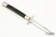 Angelo Campolin Sr. was born in 1923 in Maniago, Italy. He worked on perfecting his knife making skills before WWII and at this time made his first switchblades. After the war, in 1947 he started his company and made 30 stilettos with the marking “Angelo Campolin”. In the 1970’s Angelo’s son Gianni started to work in the company and they were specializing in folding hunting knives and also manual folding stilettos for the Robert Klaas company in Solingen Germany with their Kissing Cranes mark. In 2002 American switchblade collectors Dan Fuller, Brad West, and Tim Zinser were visiting Maniago and enjoying a few glasses of wine in a bar with Angelo Jr. and Gianni. The discussion was about a new name for some knife projects they wanted to pursue. It was Brad West that suggested the tang stamp should be AGA, for Angelo, Gianni, Angelo, thus representing three generations in the knife making business. The Campolins liked it and it stuck. In the beginning it was just a few items, but grew to the point where now there are 12 models and different scale options. The goal has been to offer quality switchblades using the old methods and traditions. Being a collector himself, Angelo Jr. knows what others like. The company headquarters has moved to Austria with production still in the original Maniago shop, as well as the others in Maniago that produce the knives for A.G.A. Campolin.
