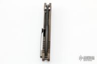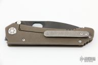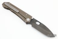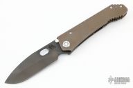 This 187 DPT Drop Point by Medford Knife and Tool features a black PVD blade with notched thumbrest and thumbhole. The handle has a stonewashed and anodized titanium frame and stonewash clip and satin hardware. Nice blade seating, detent and lockup. Excellent condition.