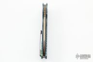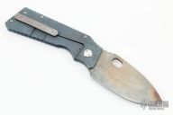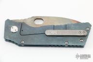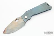This TTF-1 Fat Daddy by Medford Knife and Tool features a vulcan finished drop point blade with thumb hole and notched thumbrest. The handle is comprised of anodized and tumble finish titanium frame over titanium stand offs. The titanium pocket clip is positioned for tip up, right hand carry and is satin finished. Excellent condition.