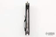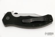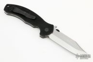 This Aftershock by Emerson features a stonewashed blade with thumbdisc, notched thumbrest and wave. The handle has black G-10 scales, titanium liners, black standoffs and a tip up stainless steel clip. Nice detent, lockup and blade seating. Excellent condition.