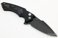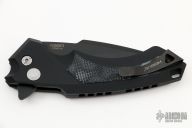 This X5 by Hogue is an Allen Elishewitz design with a black blade. The handle has a black aluminum frame with black/grey G-10 inlays, tip up reversible stainless steel clip. Comes with nylon zippered caseand extra clip. Excellent condition.