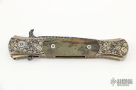 Bruce received his art training at Cal-State University at Los Angeles and is a graduate mechanical engineer. He started engraving in 1978 and has been engraving full time since 1984. Bruce spends around 60 hours of engraving time on each knife.