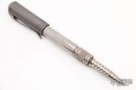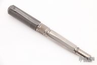 This custom pen by Allen Elishewitz is made from titanium. The cap is bead blasted titnaium with a bead blasted stainless steel clip. The body is knurled and satin finished. Takes a Parker .7 Gel insert. Has a few light scuffs, otherwise excellent condition.