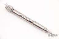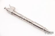 This Click Pen from Hidetoshi Nakayama features a stainless steel grip and shaft, click mechanism, lever release. Refillable - takes Caran d'Ache of Switzerland, Giant Cartridge Goliath, 8428.000 Medium Black refills. Excellent condition. Comes with a leather pouch.