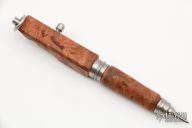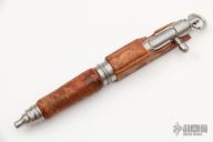 This Bolt Action Pen from Hidetoshi Nakayama features a wood and stainless steel grip and shaft, bolt action locking mechanism, and lanyard ring. Refillable - takes Caran d'Ache of Switzerland, Giant Cartridge Goliath, 8428.000 Medium Black refills. Excellent condition. Comes with a wooden box.