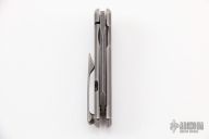 This Imp Framelock Flipper by NCC Knives features a stonewashed blade with hand ground bevels. The handle has a titanium frame with titanium hardware and tip up clip with hidden screws. Comes with original box. Excellent condition.