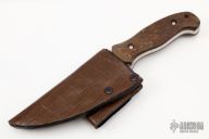This knife by Black Cloud is a Laci Szabo design features a hand rub satin finished blade with notched thumbrest, .243" blade stock and 1.673" blade depth, full tang construction. The handle has rag micarta scales. Comes with a brown leather over kydex sheath and a zippered case. Excellent condition.
