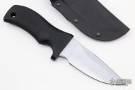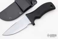 "Outstanding fighter in a compact design. Selectively tempered, the Hell Toad has a Rockwell C-scale hardness of 62 at the edge (as hard as a file), and HRC 50-54 throughout the spine and hidden full tang. Hard chrome blade finish. Sharpened top edge. 1/4" blade thickness and 1.496" blade depth.The ergonomic grip indexes the blade in the user's hand, thus letting the user know how the blade is presented, even in the dark. MDK uses a glass/epoxy composite grip material that is compression bonded to the hidden full tang. With a compressive yield strength of 79,000 psi, the grip can withstand tremendous punishment with no damage. The composite grip material provides 1,000 volts per mil (.001") dielectric strength that electrically isolates the user from the blade.  Includes a high ride kydex sheath.  New From Maker!