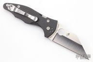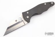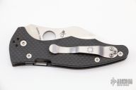 This Yojimbo 2 Linerlock Folder by Spyderco has a satin finished 20CV wharncliffe blade with thumb hole. Handle is carbon fiber with single liner (top-side lock), and 4-way reversible stainless steel clip. Comes with original box and paperwork. Excellent condition.