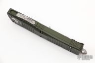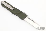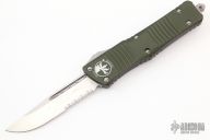 This Combat Troodon OTF automatic features a satin finish S/E blade with a partially serrated edge. OD Green aluminum handle with stainless steel clip. Glass breaker. Dated 03/2018 S/N 19433. Comes with original box. Excellent condition.