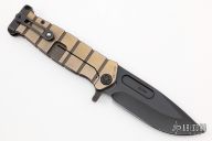 We believe we’ve come up with the best folding companion to the classic Marine Utility knife on the planet.  The knife is a perfect companion piece to the fixed “Fighter” and we call it the, “The Fighter Flipper.”.  This a big manly knife that’s as comfortable working, as it is cruising around town in your pocket.  There is so much going on with this knife its hard to take in: from the retro milling on the handles, drop-point blade, integral pommel to the bearing pressed into the one-of-a-kind pocket clip.  There truly is NOTHING like the Fighter Flipper™ in the knife world.  You will want to chop, stab and smash something with this beast in your hand so proceed with caution… Comes with original box and hard case.  Excellent Condition.