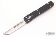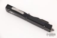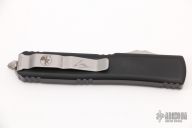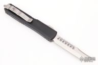 This Ultratech by Microtech Knives features a stonewashed Hellhound blade with satin flats and false top edge. The handle has a black aluminum frame with tip down blasted stainless steel clip and hardware. Comes with original box and papers. 08/2022, S/N 549. Excellent condition.