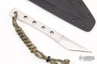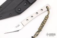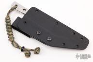 This Scalpel by David L. Clark features a mirror finished blade with fileworked spine and full tang construction, .075" blade stock and .809" blade depth, the thickness of the handle is .181". Includes a kydex sheath. New from maker!