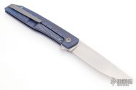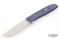 This Inspirer by Igor Oleinikov features a hand rub satin finish blade with and flipper tab. The handle features a milled and anodize finish titanium frame with a bead blast finished titanium tip up pocket clip and matching hardware. Nice detent, lock up and blade seating. Planet inlays. Includes the original box and COA.