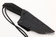 The Dub by Mick Strider features a black blade with false top edge, .213" Blade Stock and 1.586" Blade Depth, full tang construction with black paracord. Comes with kydex sheath. Excellent condition.