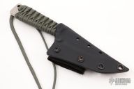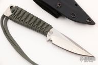 This WP by Strider Knives features a stonewash blade with false top edge, .216" blade stock and .899" blade depth, full tang construction with green paracord wrapped handle. Comes with kydex sheath. Excellent condition.