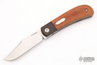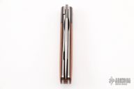 This Lanny's Clip Front Flipper Linerlock by Enrique Pena features a hand rub satin finished blade with front flipper and notched thumbrest. The handle has micarta bolsters and scales, with a stainless steel escutcheon, stainless steel liners and micarta backspacer. Nice action, detent, and blade seating. Comes with a zippered case and leather slip. Excellent condition.