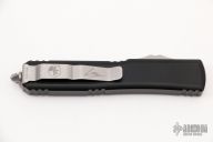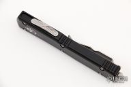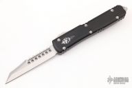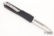This Ultratech by Microtech Knives features a stonewashed Warhound blade with satin flats and false top edge. The handle has a black aluminum frame with tip down blasted stainless steel clip and hardware. Comes with original box and papers. 05/2022, S/N 036. Excellent condition.