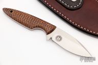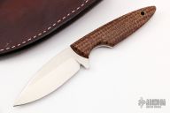 This fixed blade by Chris Taylor features a satin finish blade with .105" Blade Stock and .925" Blade Depth, full tang construction. The handle features micarta scales with a micarta pin and brass lanyard hole. Includes a black leather sheath and COA dated 9/20/22. AEBL - Cryo Treated 62HRC. New from maker.