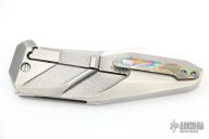 This ISLT III by GTC features a multi-ground mirror polished blade with GTC flipper. The handle has a milled and satin finished integral titanium frame with a GTC 4-alloy timascus tip up clip. Nice action, detent, lockup and blade seating. Comes with zippered case and COA dated 2022. Excellent condition.