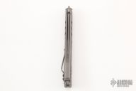 The Alpha Beast Infinity is a fine-tuned version of the original packed with next level quality, style, and performance. The blade is made from resilient CPM-S35VN stainless steel with a dark stonewashed finish and a crowned spine. It features rounded titanium handles that enhance overall grip and comfort. Comes complete with a removable contoured pocket clip for convenient carry.