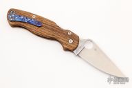 Comes with a Spyderco box and papers. This one has custom wood scales, mokuti clip and notched titanium backspacer. Excellent condition.