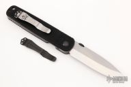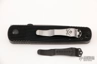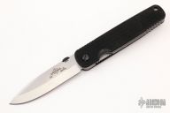 Ernie Emerson says "Symmetry, Grace, and Power. These three words describe the Emerson Model A100 knife perfectly. When I first started making knives, before “Tactical”, I was making this pattern. I liked it then just as much as I like it now. This knife became the archetype from which all of my other designs have evolved . It is the “Father” of all my tactical designs. In fact it might be the “Grandfather” of all tactical knife designs that now exist. It’s simple, it works, and it never gives up. See for yourself." This knife has a stonewashed spearpoint blade with thumbdisc. The handle has textured black G-10 scales, titanium liners, and a tip up Emerson stainless steel clip. S/N 2423. Excellent condition. Comes with original box and papers.