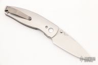 This Neutron Linerlock by Three Rivers features a stonewash finished blade with dual thumbstuds. The handle has milled titanium scales, titanium liner with a titanium tip up reversible clip. Nice detent, lockup and blade seating. Comes with original box, and papers. Excellent condition.