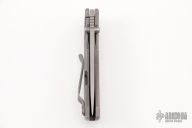 This MAC2 features a stonewashed drop point Magnacut blade with dual thumbstuds and a notched thumbrest.  The handle features a stonewashed titanium frame with frag pattern milling, a matching tip up pocket clip. Comes with original box and COA. Comes with a custom mokuti backspacer and clip. Comes with other extra hardware as well.